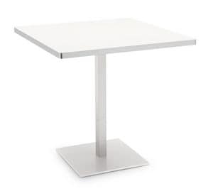 Square table with steel base and top in melamine