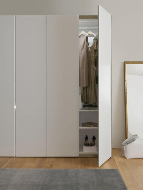 Similar productsThe Riguardaroba Wardrobe collection characterized by precious finishes with doorways of different measures and two heights. Internal structures in rich surfaces brings the high image of the exterior to the interior of the wardrobes. With less talk and more substance, these pieces have a simple look to them, that highlights both the richness of the materials used, and the detailing of their designs. A collection of wardrobes with 7 types of white lacquers. Four opening systems: hinged, sliding, co-linear and folding. Cut out handles are discretelt hidden in the door fronts so as not to upset the visual balance. A re-thinking of interiors to meet your everyday storage needs. Spaces filled with custom-built, flexible, carefully thought out new storage options, that blend harmoniously to fit the room.