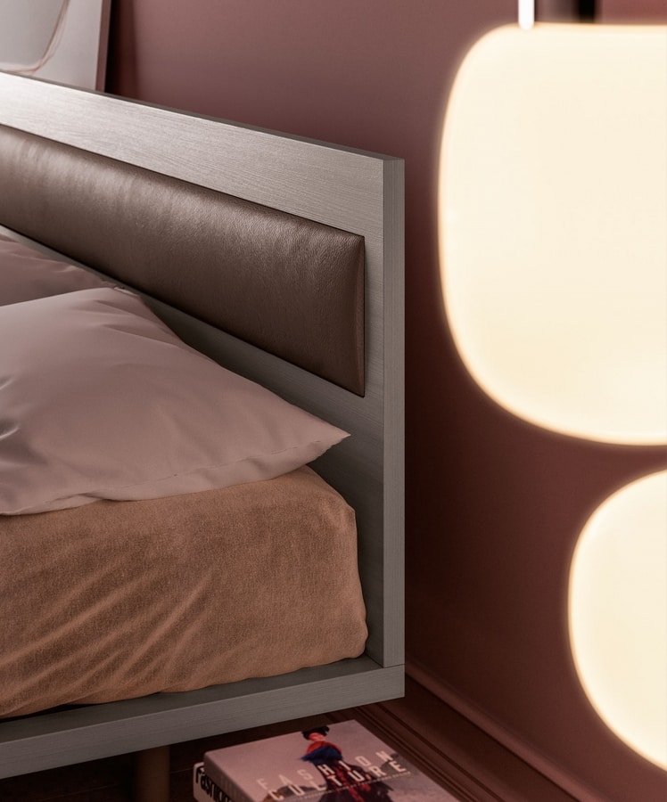 Double bed with headboard made of faux leather