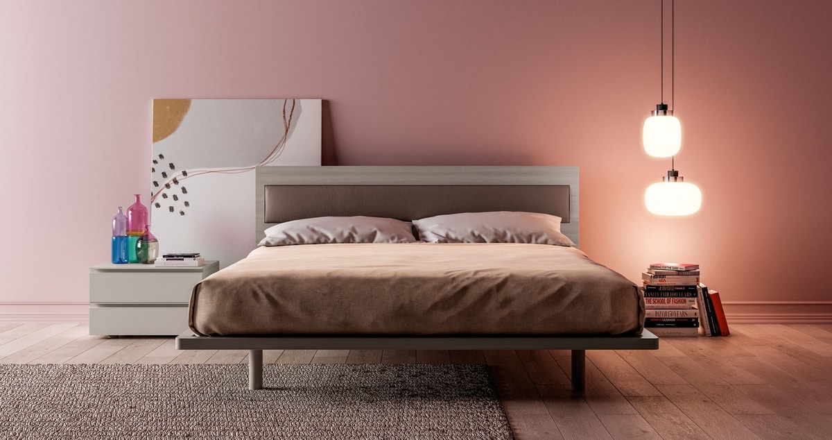 Double bed. Materic Multistriped Grey structure. Upholstered head in eco-leather 536/8.