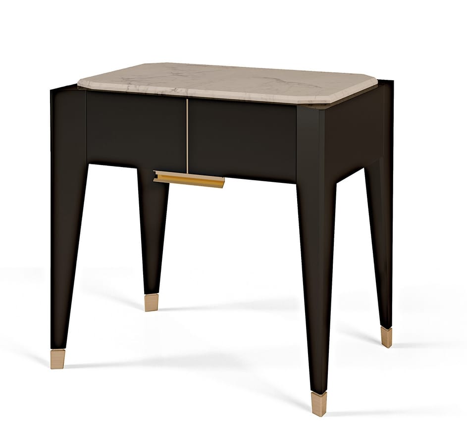 Bedside table with white Carrara marble top