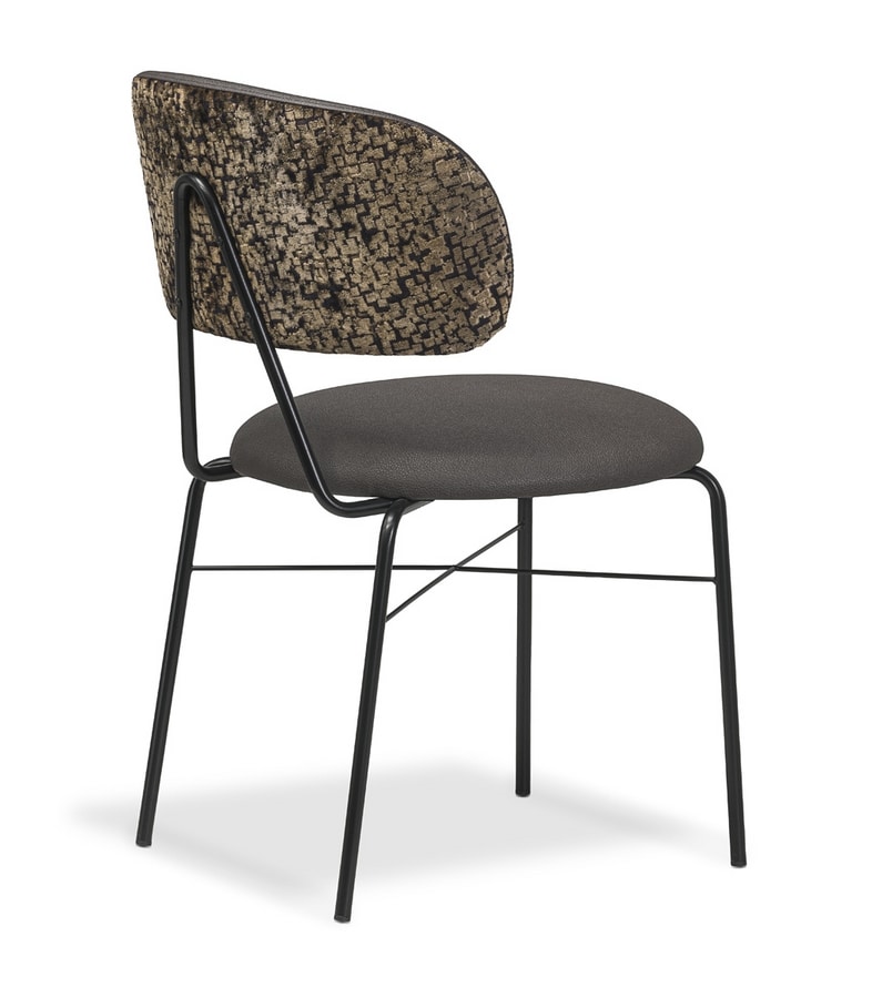 Upholstered chair with a metal structure, Dot is characterized by a wide and enveloping backrest and a round seat. Entirely padded, it can be covered in fabric, eco-leather and leather, guaranteeing maximum customization. Dot is light and practical, designed to furnish bistros, restaurants and pubs, but also private homes. The metal structure can be customized in all RAL colors.