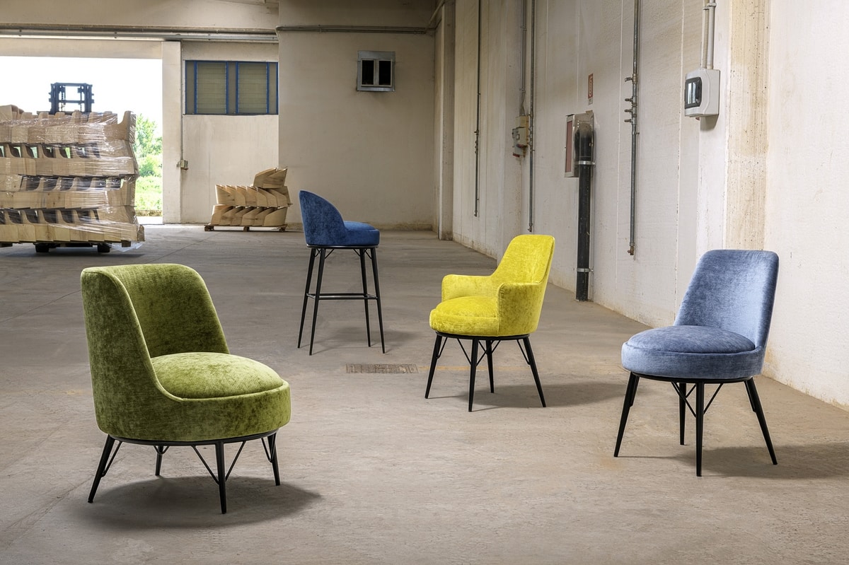 With a contemporary soul, created to elegantly interpret contract interiors. Soft, enveloping shapes invite comfort and relaxation, while the metal frame adds strength and a bold graphic identity. This chair engages in a harmonious dialogue, balancing warmth with a refined architectural presence. A versatile solution for hospitality, dining, and shared spaces, where design and functionality come together to shape modern and distinctive environments.
