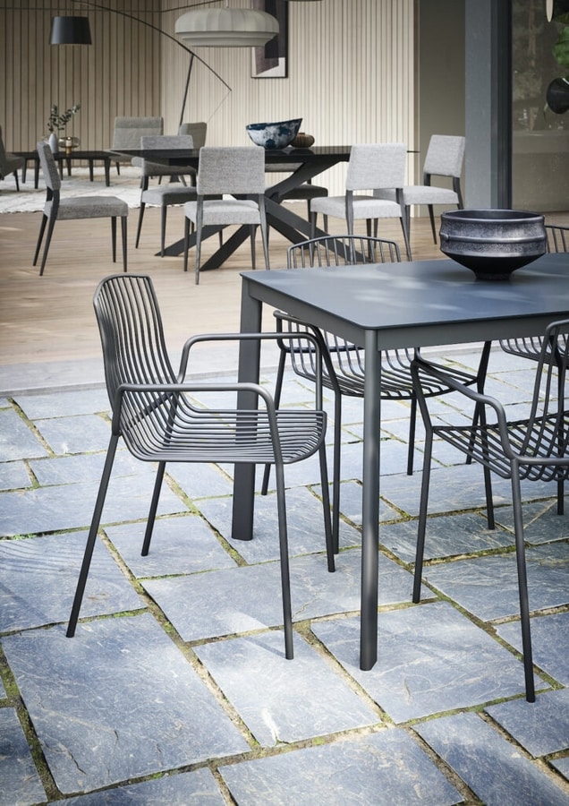 Metal chair with armrests, for outdoor
