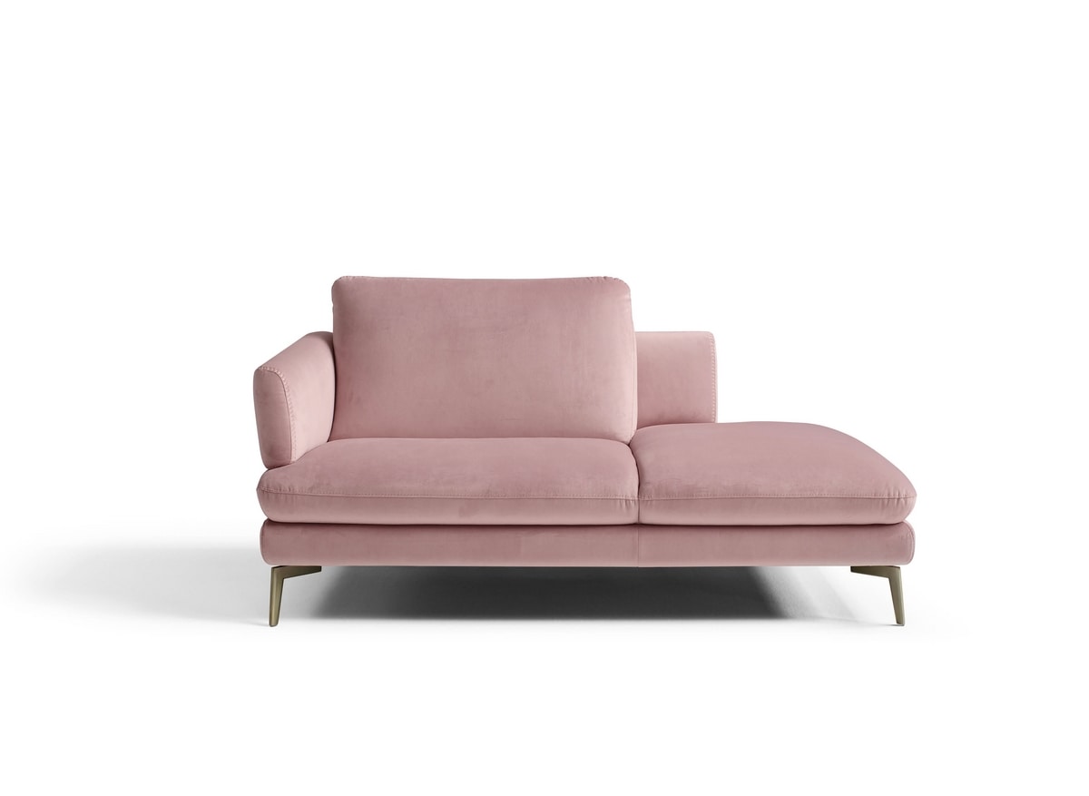 Fabric or leather dormeuse very versatile in size, with great attention to detail, "soap-bar"-shaped seats, typical of pillows, which come out of the armrest making the side of the model unique in its kind. With a high-end finish and special horseshoe stitching on the armrest.