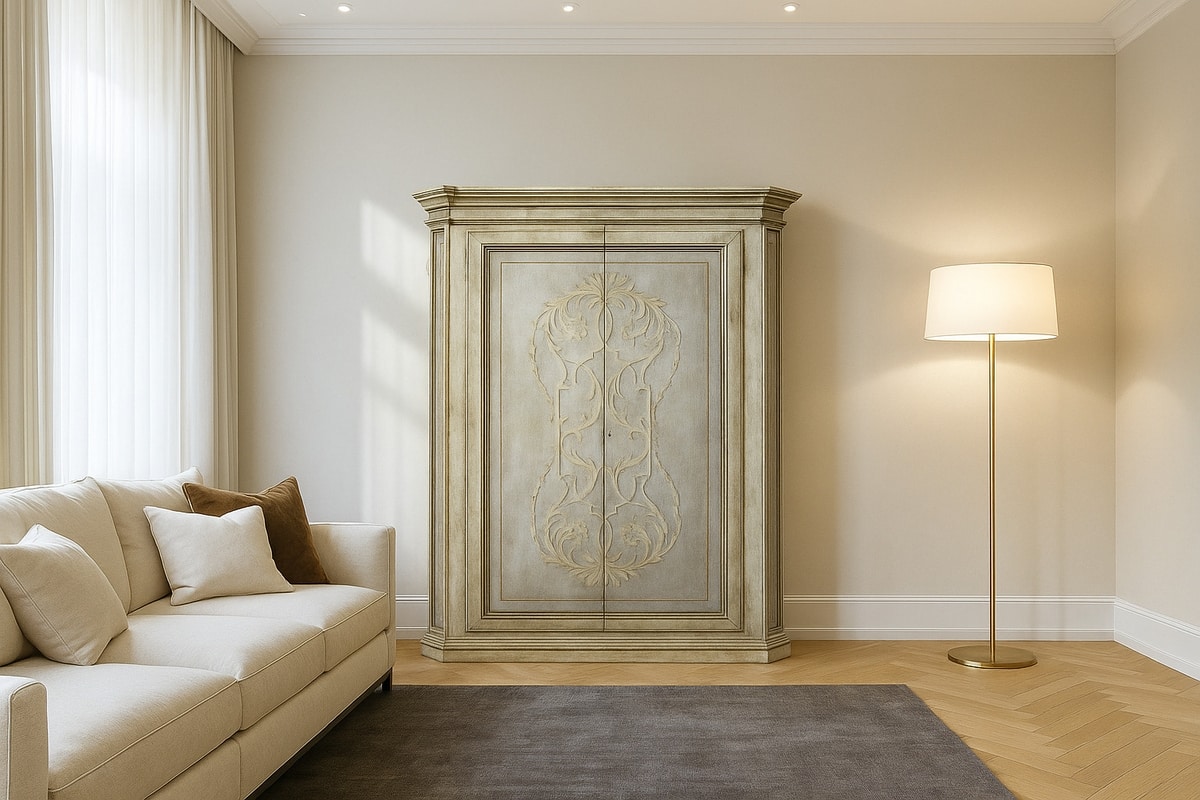 Request quote/price Similar productsA two-door wardrobe entirely crafted in blockboard wood with solid wood frames, enhanced by a Florentine-style decoration executed with traditional artisanal techniques. The lacquering is done with water-based paints, while the finishes in shellac and natural waxes create an elegant aged effect. This wardrobe embodies the perfect balance of craftsmanship, elegance, and functionality: ideal for rustic environments such as farmhouses and country homes, but also for modern interiors where it provides a refined contrast of style.