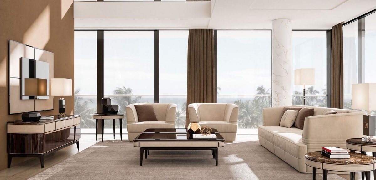 Top: wood with shaped edge, veneered or lacquered, or in marble. Metal details. Under wood top covered with skin or fabric.