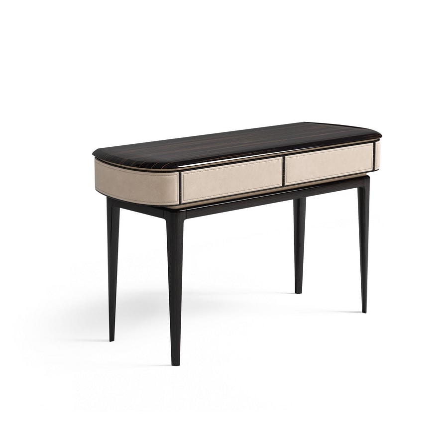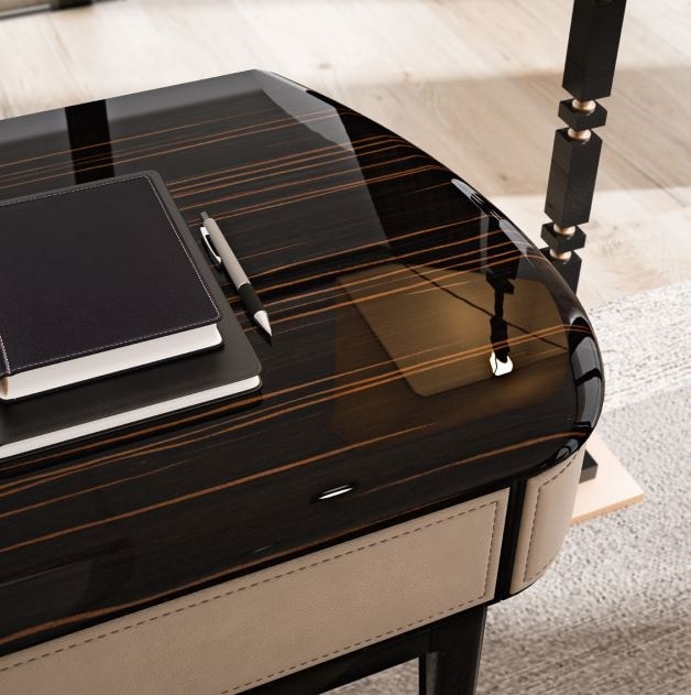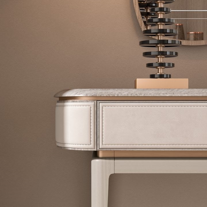 Drawers: wood with fronts covered in leather or fabric. Internal lacquered wood and coated in microfiber, opening with a push-pull system.