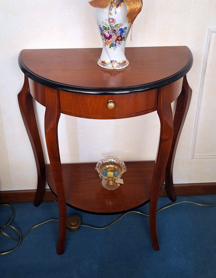 Console in classic style, with a semi-circular top. Walnut finish. Equipped with 1 comfortable drawer.