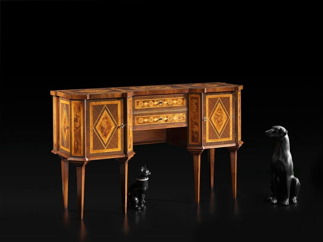 18th-century-style Emilia inlaid console table with two doors and two drawers