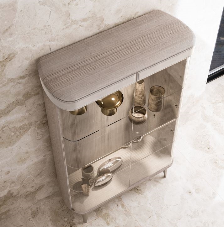 Top: wood with shaped edge, veneered or lacquered, or in marble. Under wood top covered with leather or fabric.