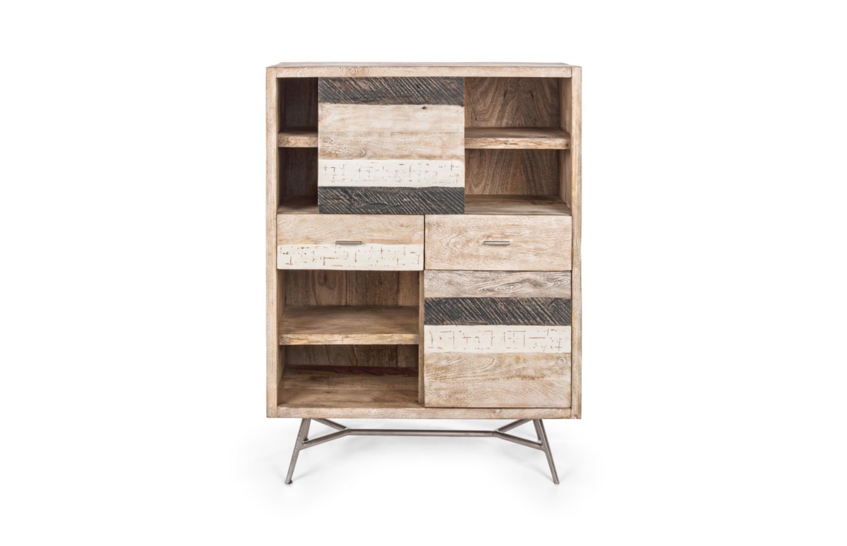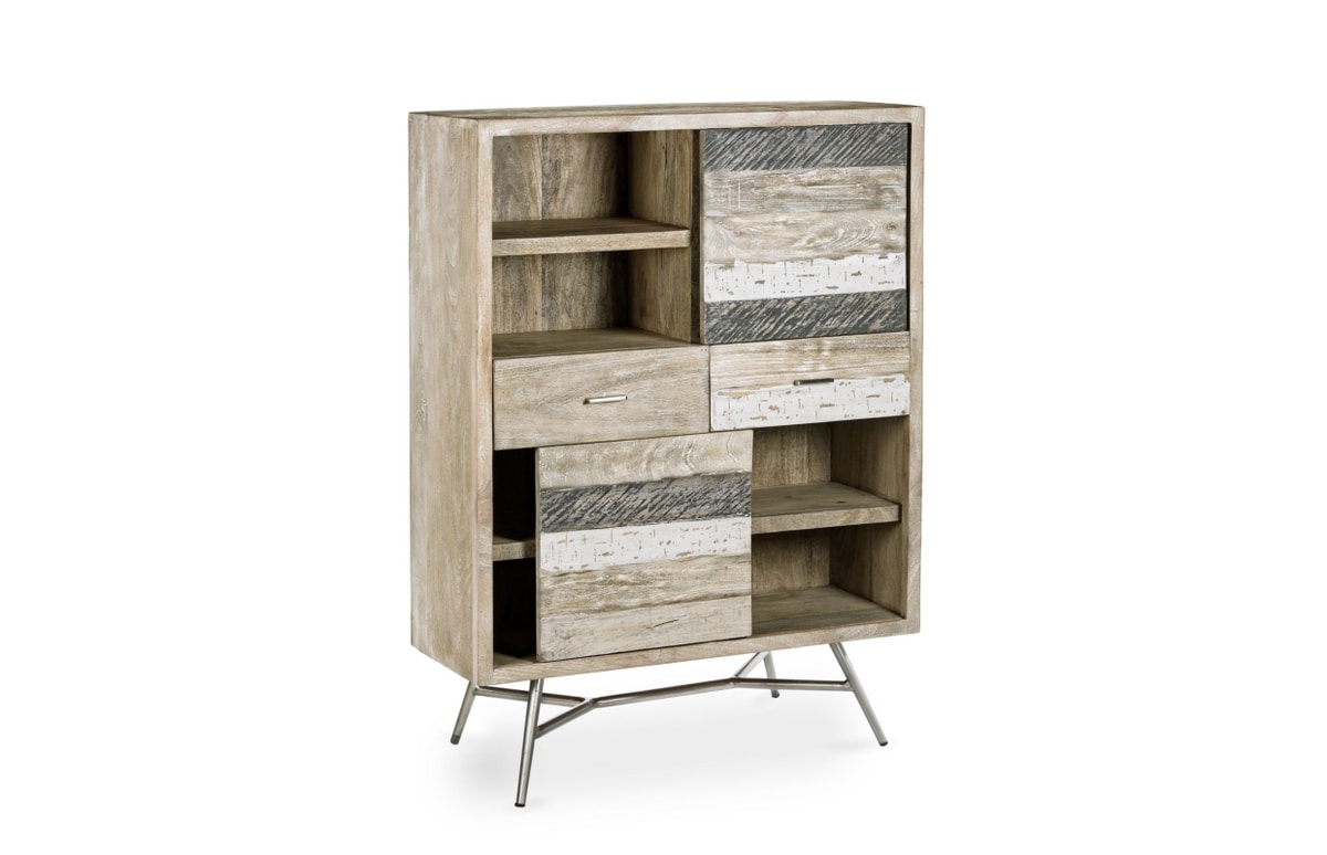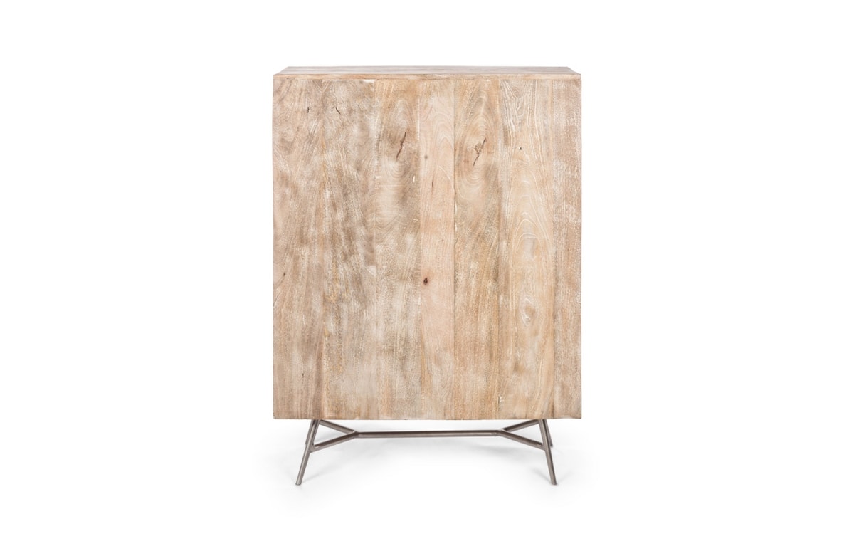 Sideboard with mango wood frame. Feet to be assembled in iron. Sliding doors. Metal handles. Nitrocellulose based finish.