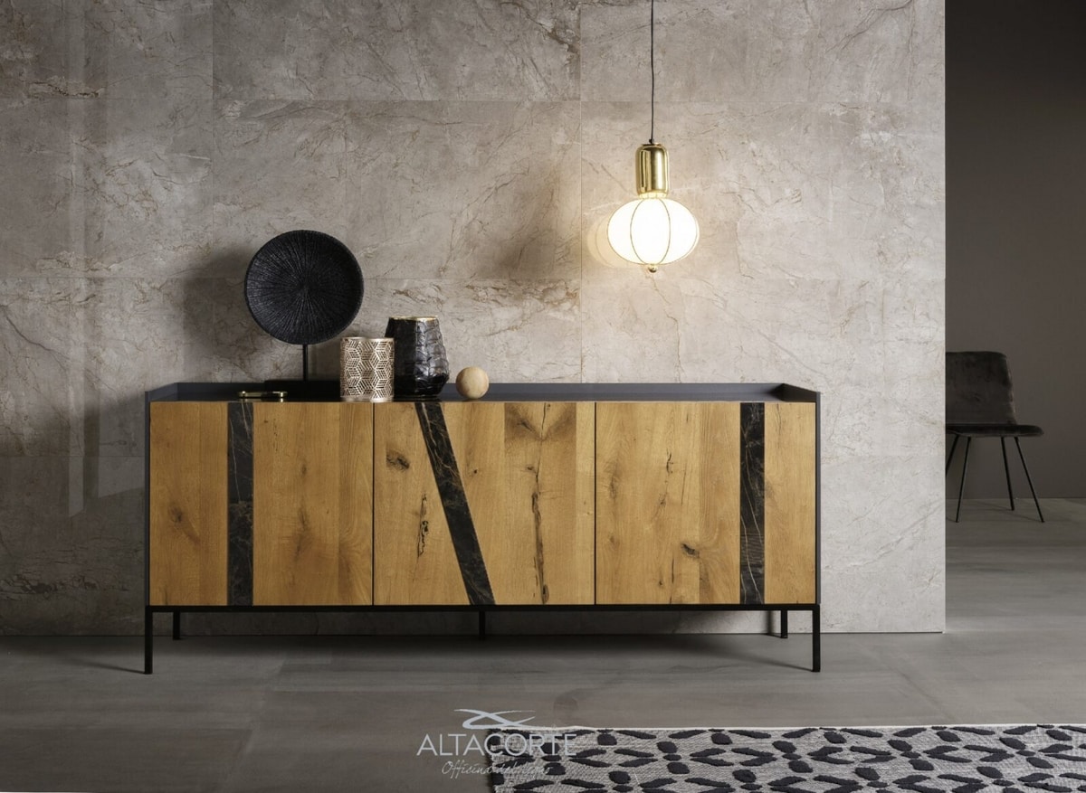 A modern sideboard of strong impact for your guests. Customizable with more than 500 different combinations between cabinets, doors, legs, inserts and tops: in this way each sideboard will be different from all the others. How would you make it?