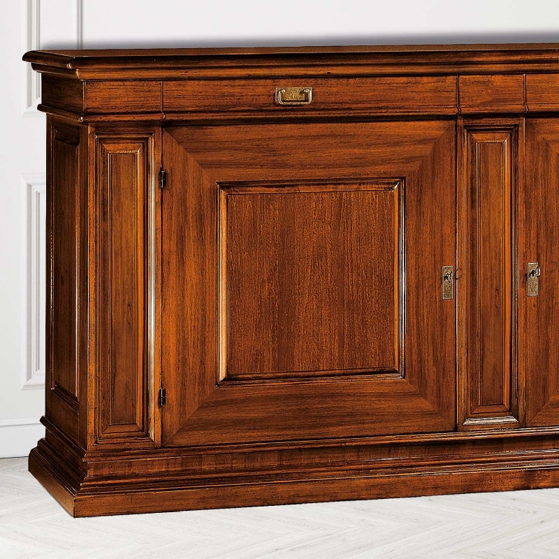 Request quote/price Similar productsSideboard with two doors and two very large drawers. Sides, shoulders and doors squared with bosses in the centre. Linear base enriched by frames with multiple shapes. The simple and rigorous shapes of this piece of furniture allow it to be inserted into country or classic style furnishings. The use of soft colors such as white or ivory should be considered to make the image fresher and more current.