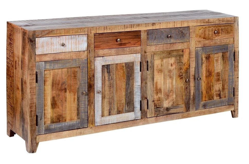 Sideboard equipped with drawers and doors. The piece of furniture is a particular belief that takes shape from recycled solid wood. The one in question is a very fascinated furnishing complement, which emerges for its variety of colors, which can be combined with many rooms sea, plain and mountains.