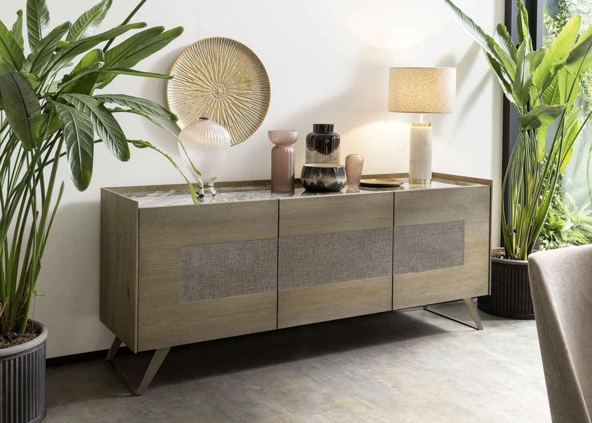 A modern sideboard with a sure impact for your guests. Customizable in over 500 combinations of body, doors, brackets, inserts and tops, it ensures that each one is never the same as the other. How would you do it?