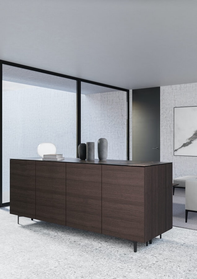 Request quote/price Similar productsModular sideboard with top in wood (oak or walnut), fenix, hpl or ceramic and a wide choice of feet (5-17 cm) in wood or metal. Door featuring a push-to-open system. Drawers featuring a soft-close Blumotion system. Possibility of doors and drawers in fenix or hpl.