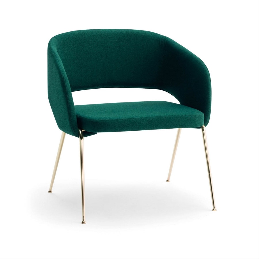 Lounge chair with metal frame, seat and back upholstered in ecoleather (coated fabric) or in fabric.