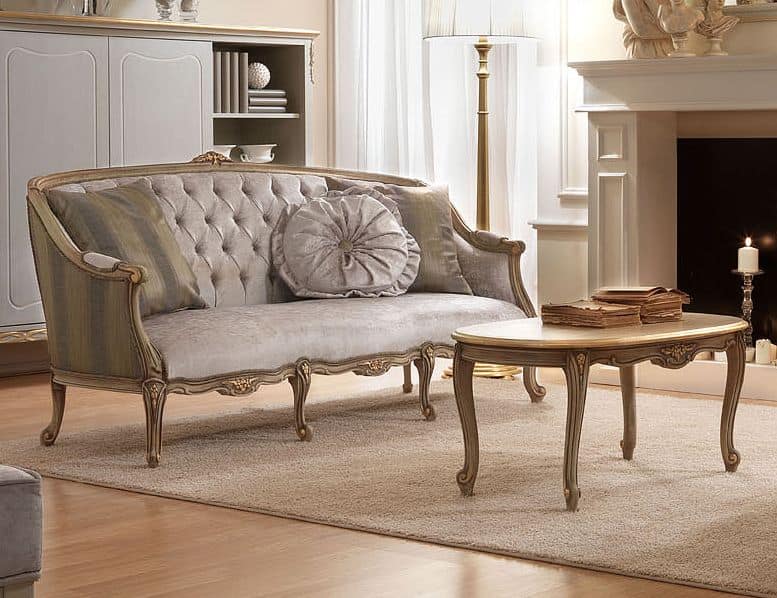 Classic sofa with three seats, in hand-carved wood, for sitting rooms