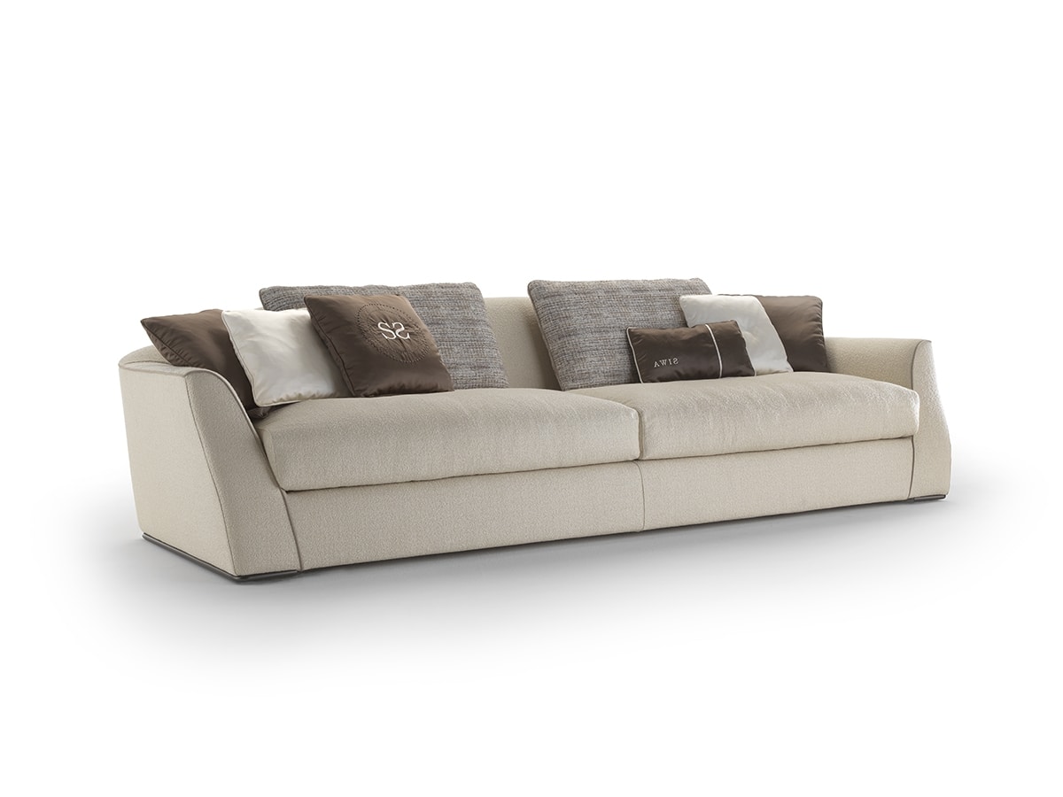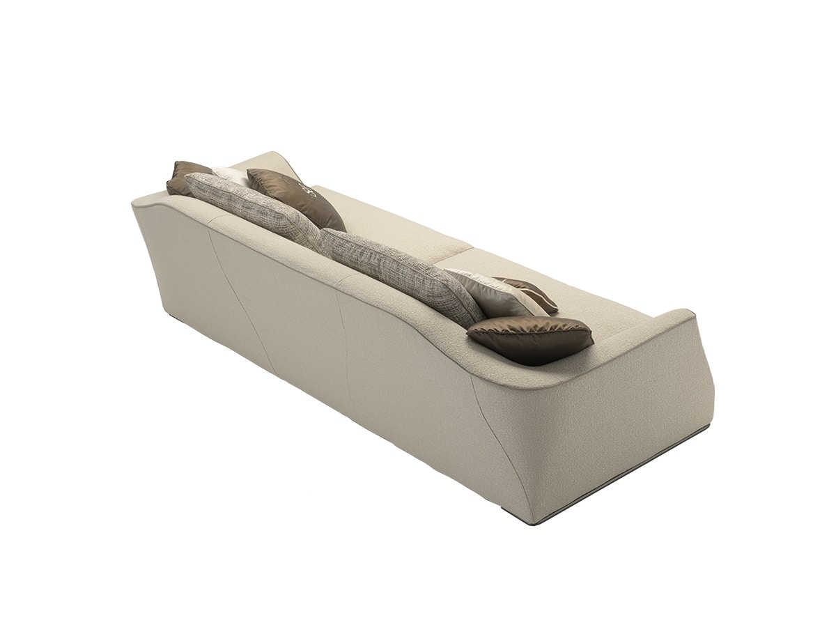 A sofa with a sinuous and enveloping design, characterized by soft, rounded shapes that make it extremely welcoming. The sofa seats are designed to offer maximum comfort, with generous padding that invites you to sit and relax. The fabrics used to cover the sofa are of high quality and are carefully combined to create a contrasting and visually harmonious effect. This sofa is able to adapt to any environment thanks to its design and its ability to blend in with the surrounding style and decor.