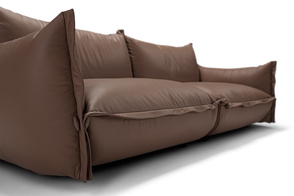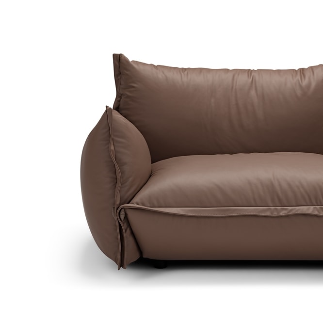 Thinking of a sofa that could embody the quintessence of comfort, our designers came up with the modular Gala model: inviting to the eye, irresistible and unmissable after experiencing the softness of its soapy seats and enveloping backrests. The padded parts conceal feather and polyurethane foam, a guarantee of unparalleled comfort. Available in multiple configurations, thanks to the possibility of combining different types of modular elements, Gala is also an expression of sartorial care. The finishes of the upholstered parts, the profiles defined by bands, and the leather frogs that we have inserted as decorative and connecting elements between the seat and the armrests. Gala is available with soft leather or fabric upholstery.