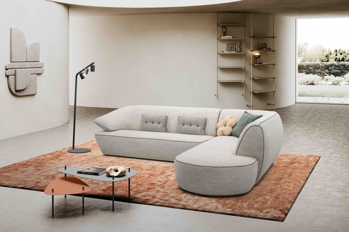 FREE HUGS! That's what our MOMO seems to shout out to the world, the sofa with an embracing shape that urges everyone to abandon themselves to total relaxation. Available in fabric and/or microfibre, MOMO is made unique by the Lycra piping that outlines its profile. Customize it with the colors that best reflect your style and the most suitable configuration for your environment.
