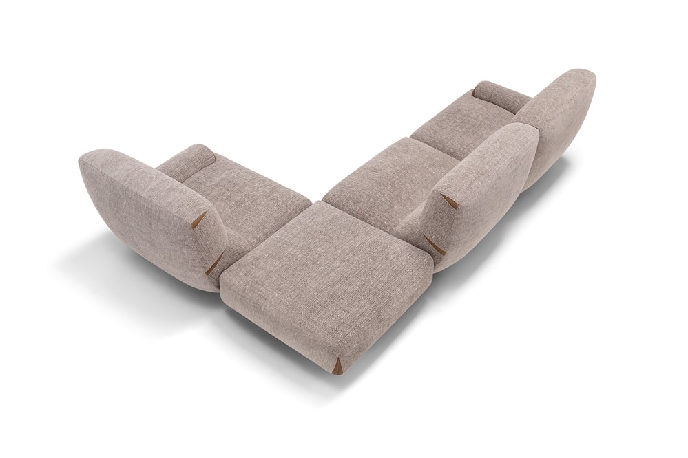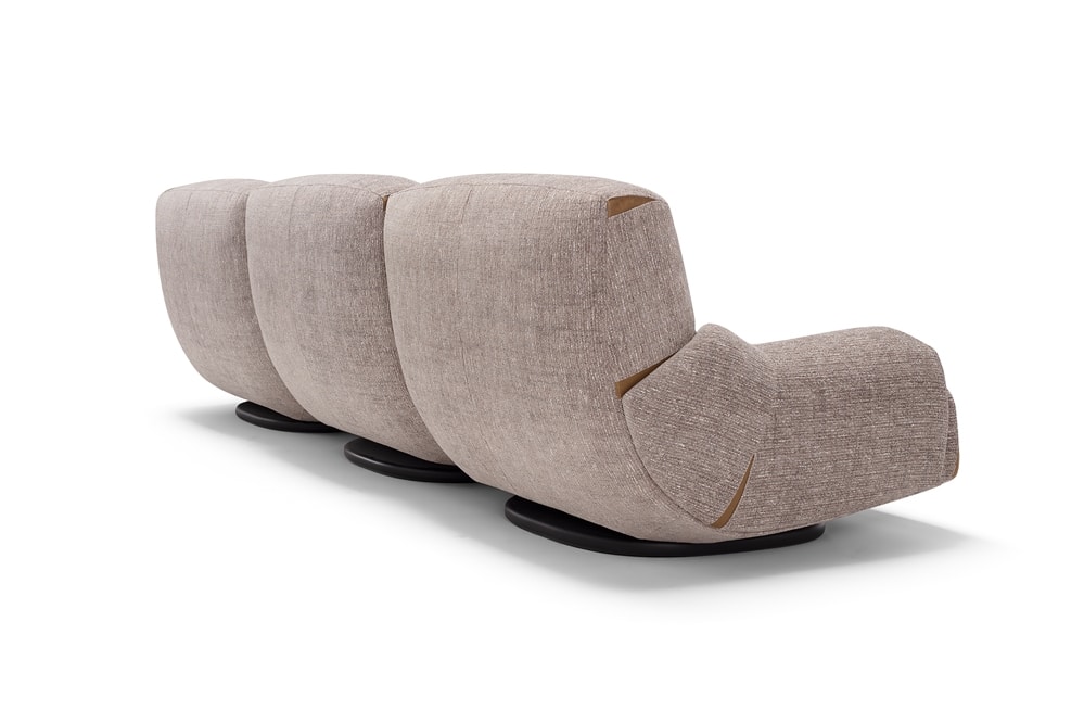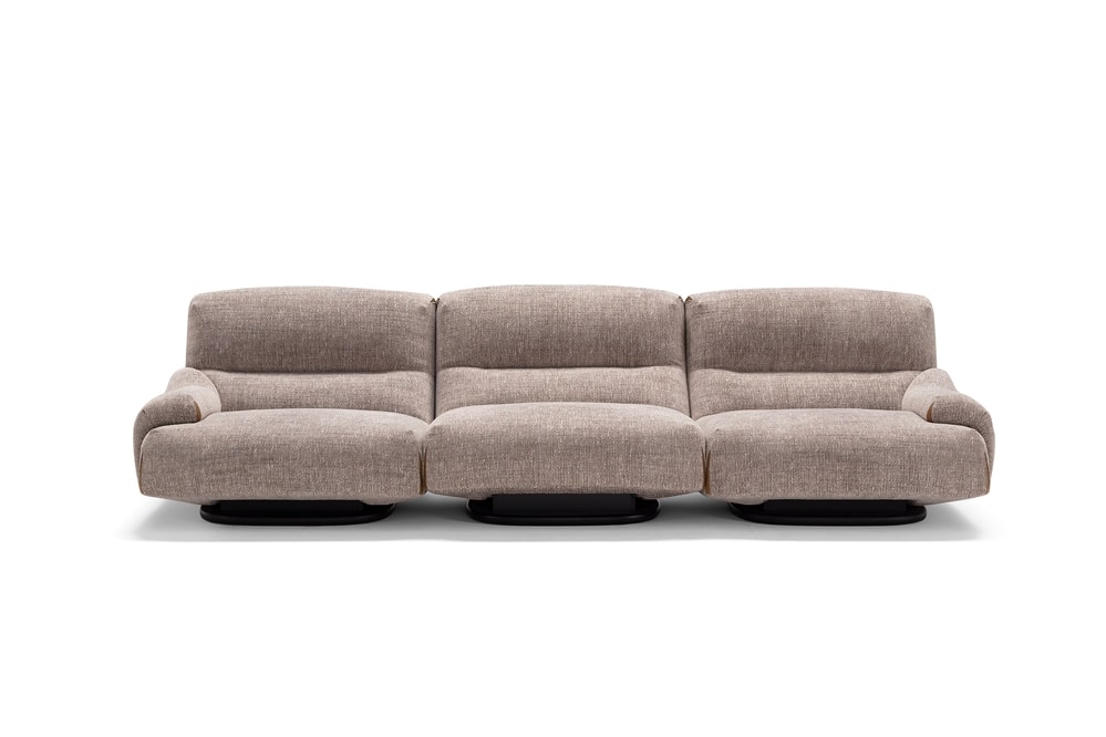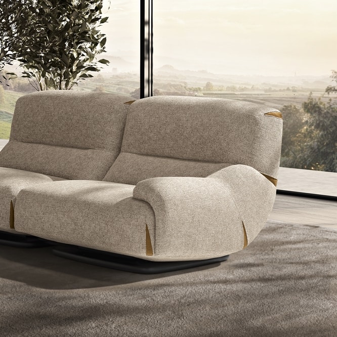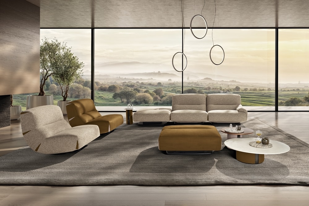 Modular sofa with rocking and swivel systems. A combination of comfort and refined design, where details play a leading role to offer a unique and sophisticated relaxation experience.