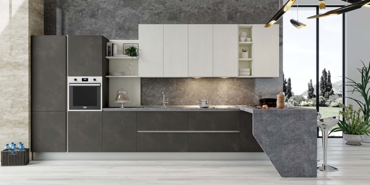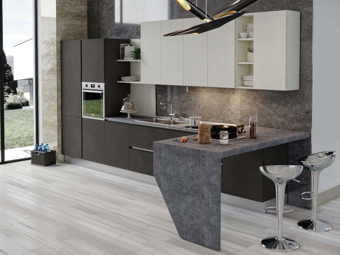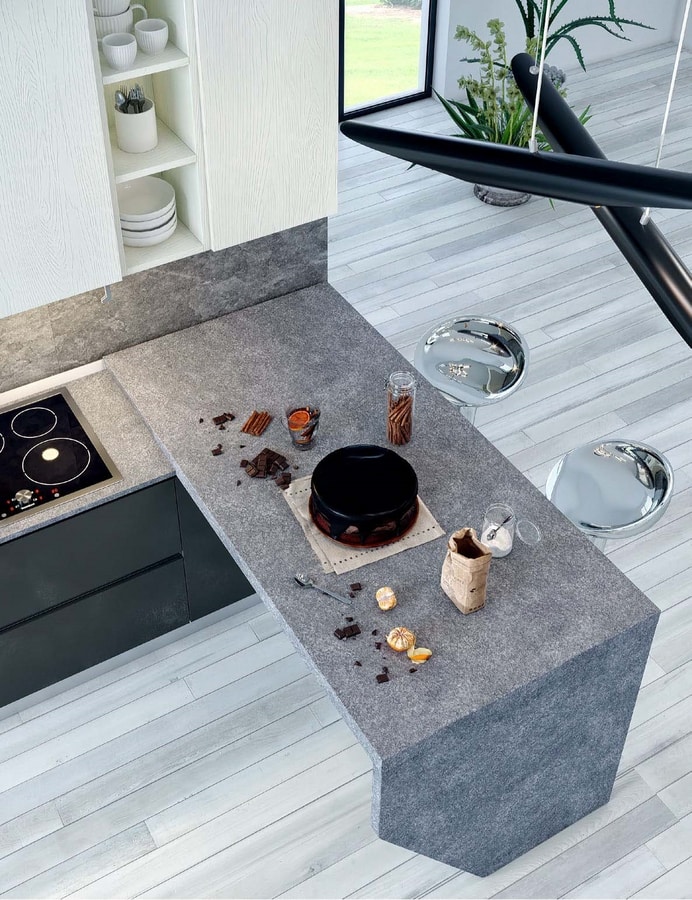 Similar productsVogue/3 a perfect balance between the neutral color and the materiality of “pietra Di Nanto”. The peninsula is not just a mere extension of the worktop but a real design element.