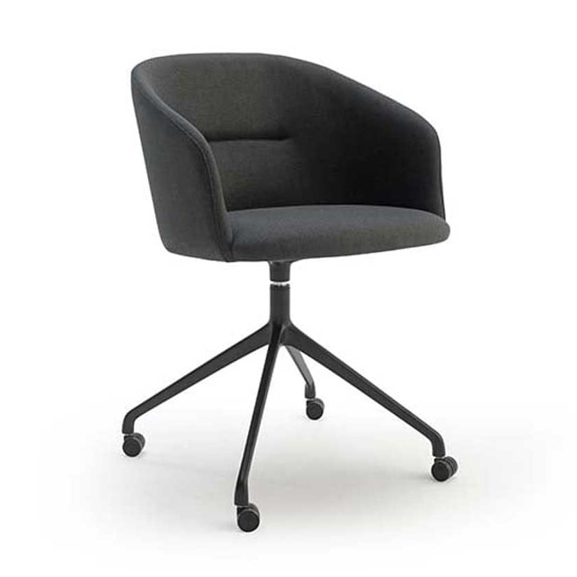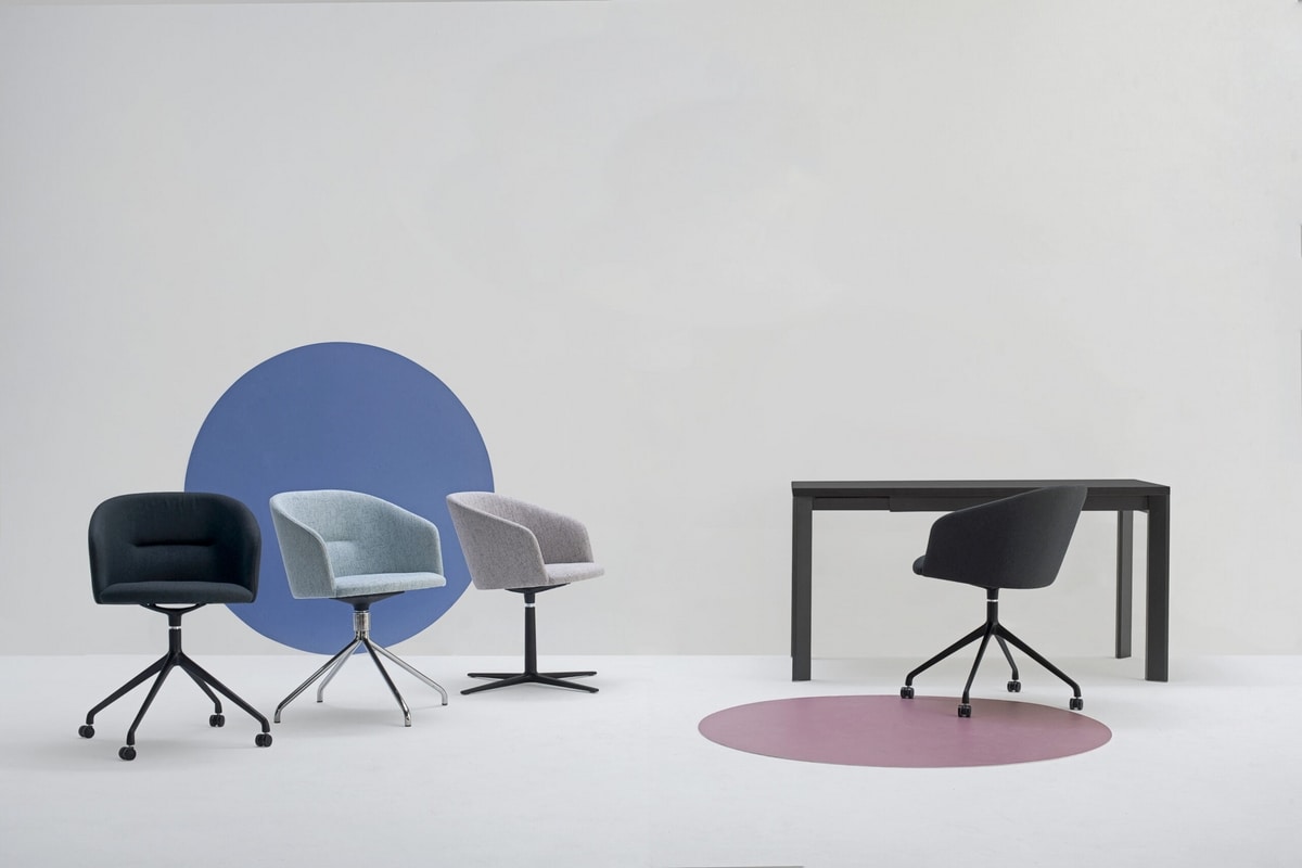 The swivel base of the DORY collection create an elegant and versatile design piece, characterized by a soft and comfortable padding. The perfect seating for an office – home office context.