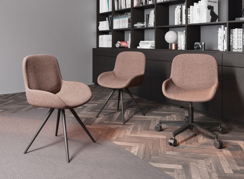Comfortable seating, versatile in terms of use, thanks to a range that sees Tiki supported by thin legs and a base in wood, metal or mounted on wheels.