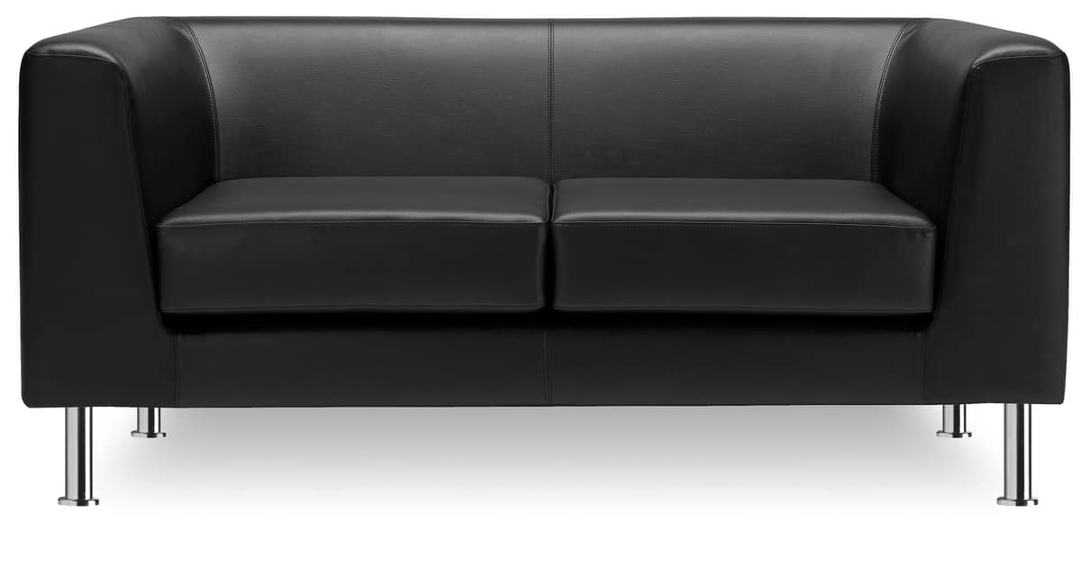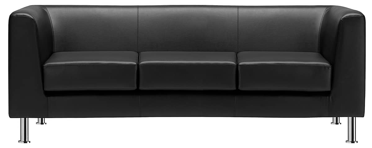 Sofa with wooden frame. Padded polyurethane foam. Chromed feet. Available in 2-seater or 3-seater versions.