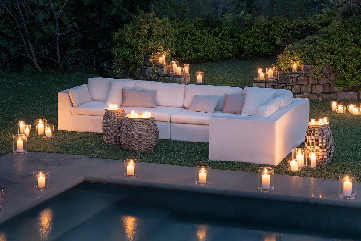 The exceptional upholstery of Zefiro sectional sofa creates a particularly ergonomic sitting experience. The inner frame construction is made of aluminium covered with outdoor fabrics. The cover can be removed. Satin-finish aluminium feet with adjustable glides.