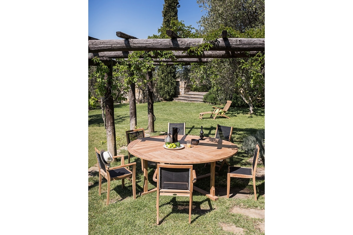 This is the larger size of Bristol tables collections. The round table measure 210 centimeter of diameter and with Olimpo tables is part of the giants tables of our catalogue. Made of weather-resistant, unfinished teak wood with Fine Sanded Finishing. On request available in different finishes.