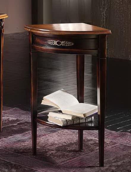 Angular console with shelf, made of solid wood, designed in luxurious classic style.