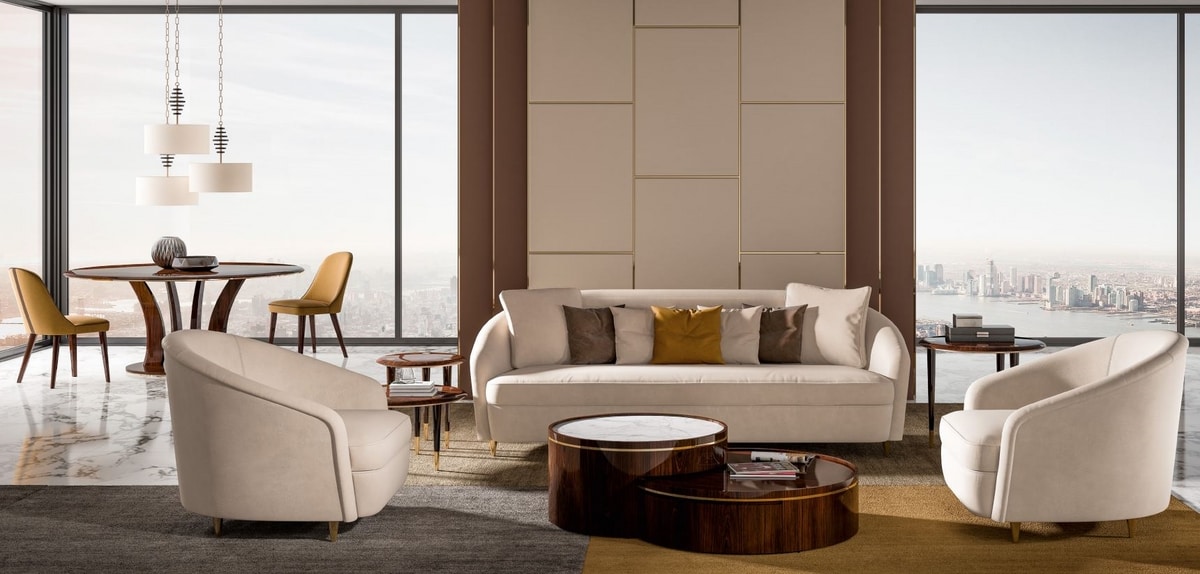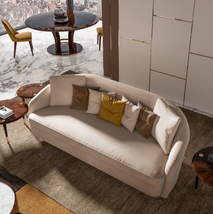 Structure / seat: wooden frame with differentiated density expanded polyurethane padding. Sitting with elastic straps.