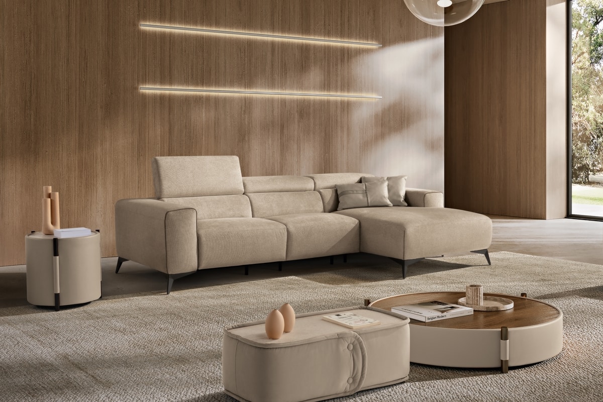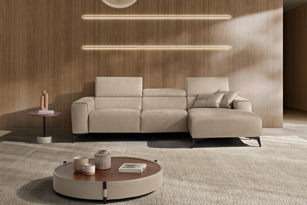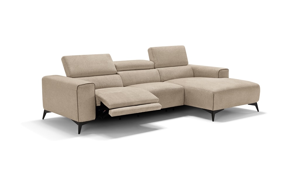 Request quote/price Similar productsGenerous and welcoming volumes for the Rev modular sofa: the combination of its items, designed to fit perfectly with each other, allows the sofa to be enlarged, reduced or reconfigured according to the environment in which it will be placed and individual comfort requirements. One of the best sellers in our collection of relaxation sofas, Rev is characterised by the presence of mechanical movements that to rest and get the best ergonomic result: by means of an electrically-activated push-button panel, the footrest can be raised, while the headrest can be lowered with a simple manual gesture. The handcrafted attention to detail, a distinctive feature of all our creations, is expressed here in the finish with contrasting colour edging of the armrest and in the metal feet available in four different finishes. Rev is offered with fabrics leathers upon request.
