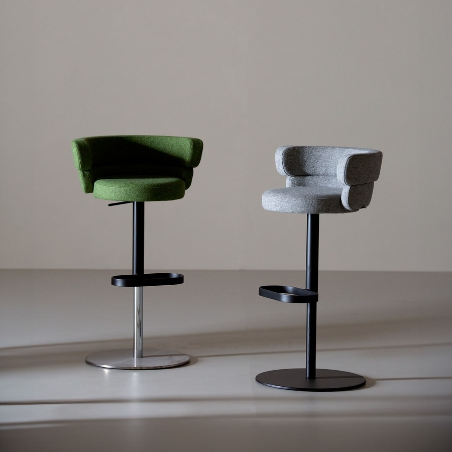 Request quote/price Similar productsSwivel stool, stainless steel base, steel footrest and upholstered shell with flame-retardant polyurethane foam. Adjustable height with gas device. Stool base: Ø 45 cm.
