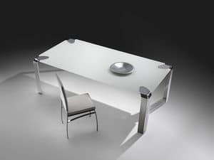 Table with aluminium base constructed without welds for a sleek look, glass top