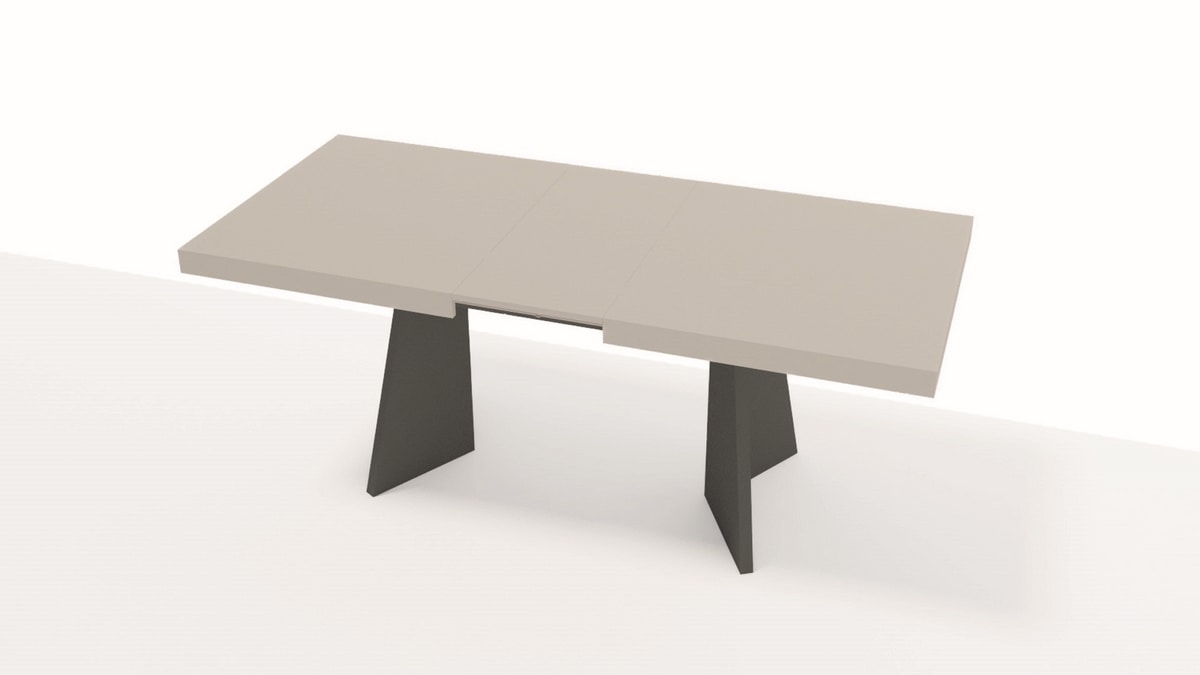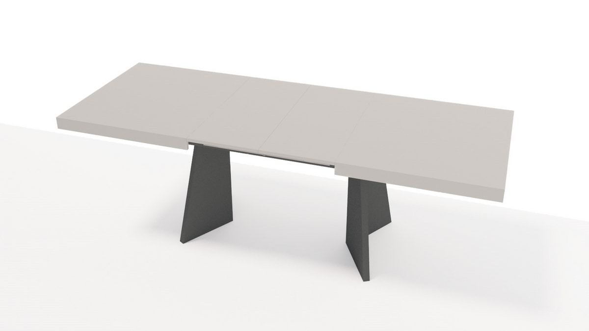 All tables feature a synchronous extension mechanism, extending from 160 to 240 cm to comfortably seat 4 to 12 people. The two extensions, finished to match the tabletop, are neatly stored in a compartment beneath the surface. This under-top space can also be used to store cutlery, table linens, or other dining essentials.