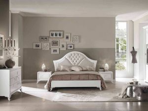 Bed in mother-of-pearl finish wood, with leather upholstery