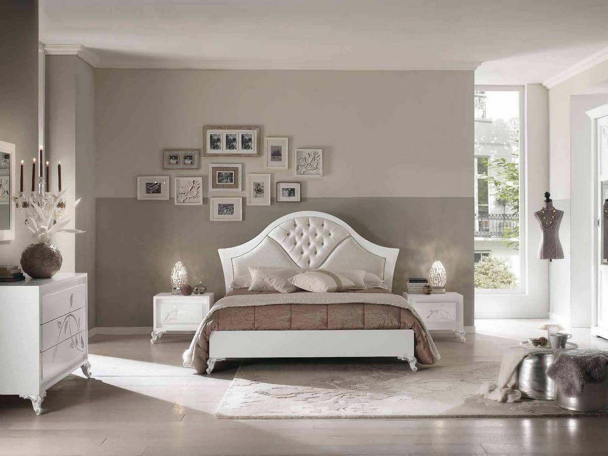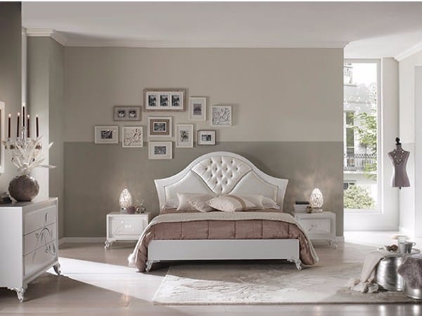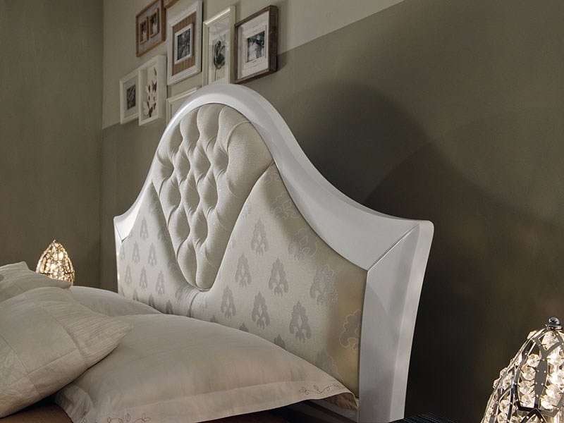 Elegant bed with upholstered headboard, with tufted workmanship. Wooden structure. Ideal for furnishing rooms in classic contemporary style.