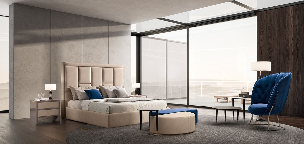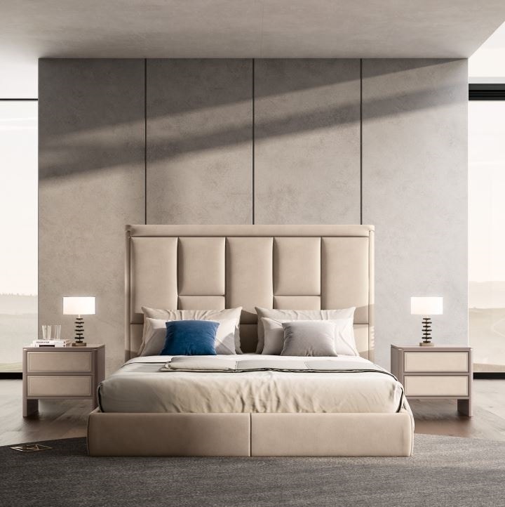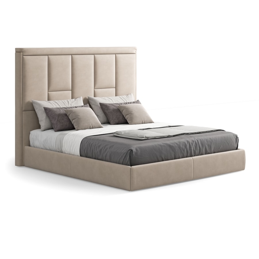 Bed with tall padded headboard