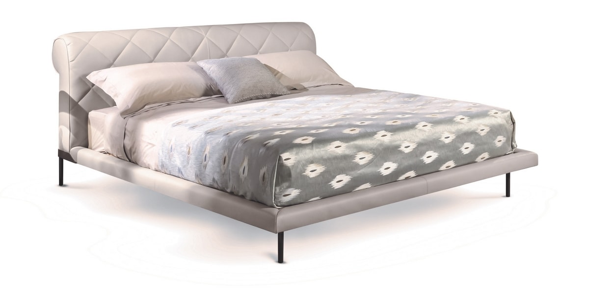 Padded double bed Gregory is reinterpretation of a classic model, The bedframe is padded and upholstered leather.