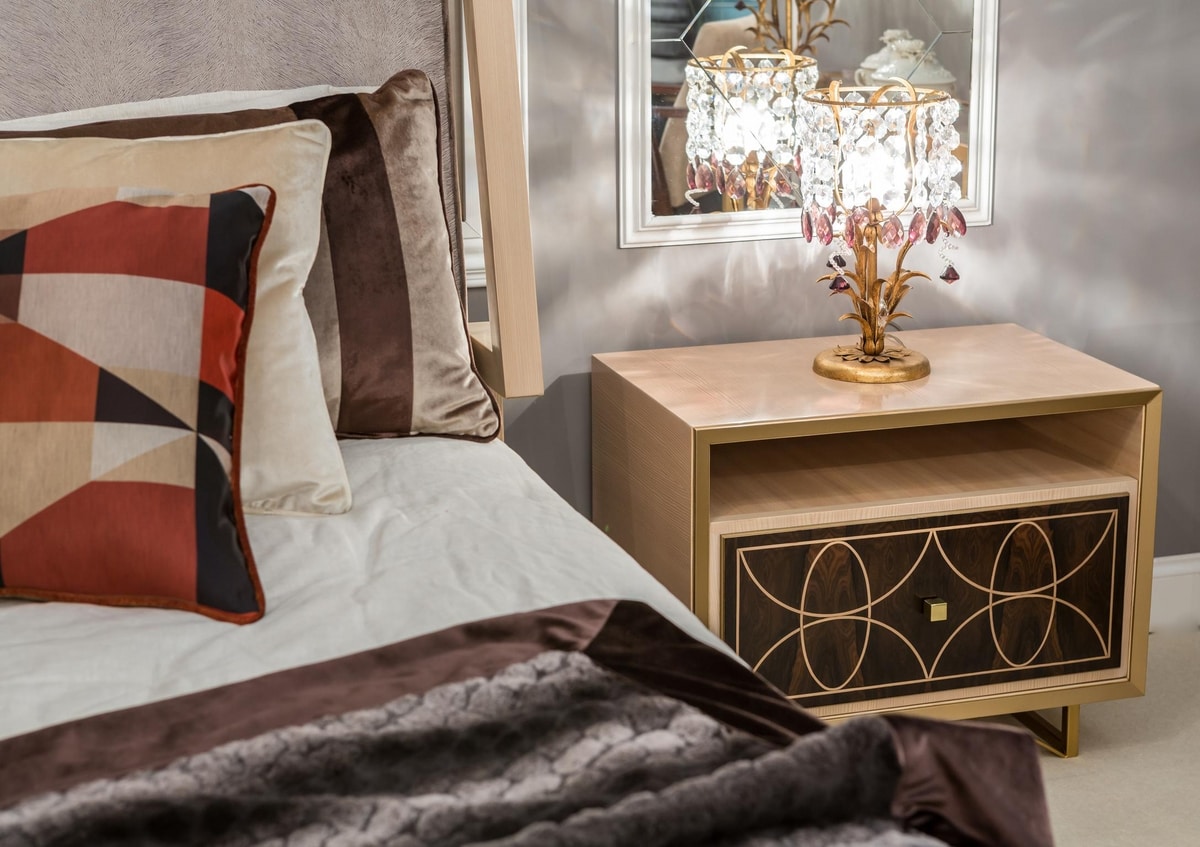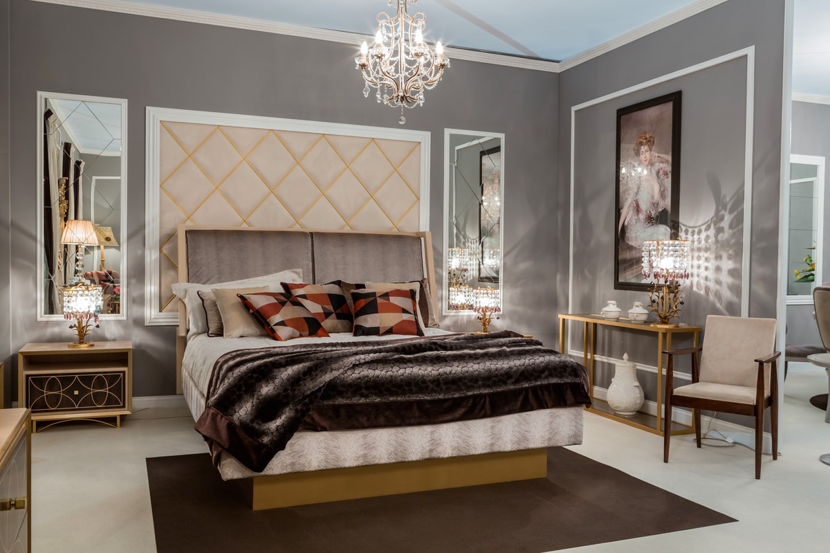 Elegant bed with upholstered headboard