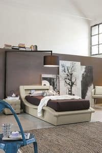 Contemporary padded bed, with soft shapes