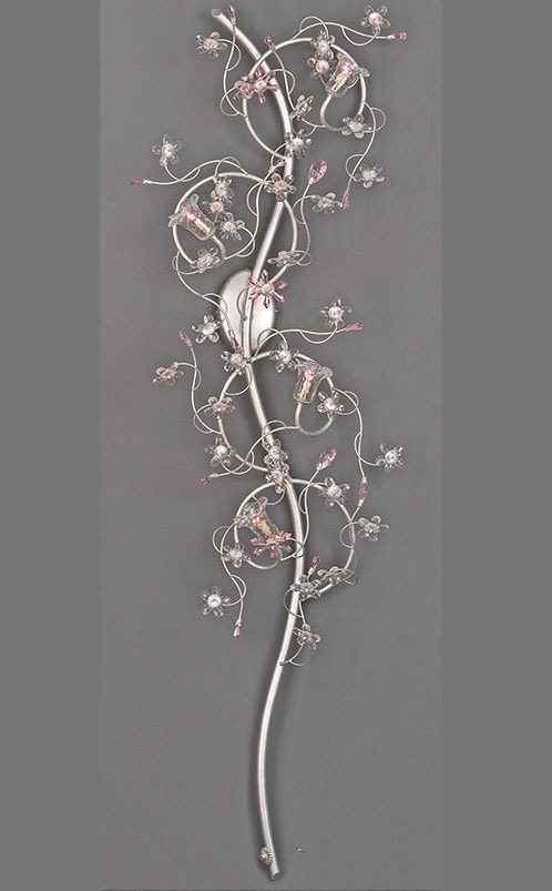 Vertical wall light 4 lights G9 max 40 watt / silver leaf finish / transparent Murano diffusers pink / transparent Scholer crystal pink.