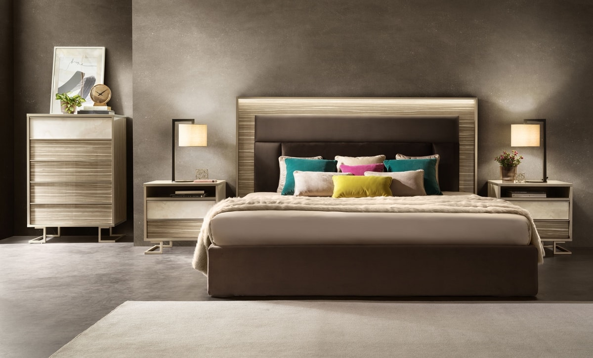 Request quote/price Similar productsThe bed is available with either a Zebrano wood-effect frame or upholstered headboard. For more practicality, you can opt for a storage bed. The sober and cosy Luce Light bedroom uses material contrasts in all its furnishing elements.